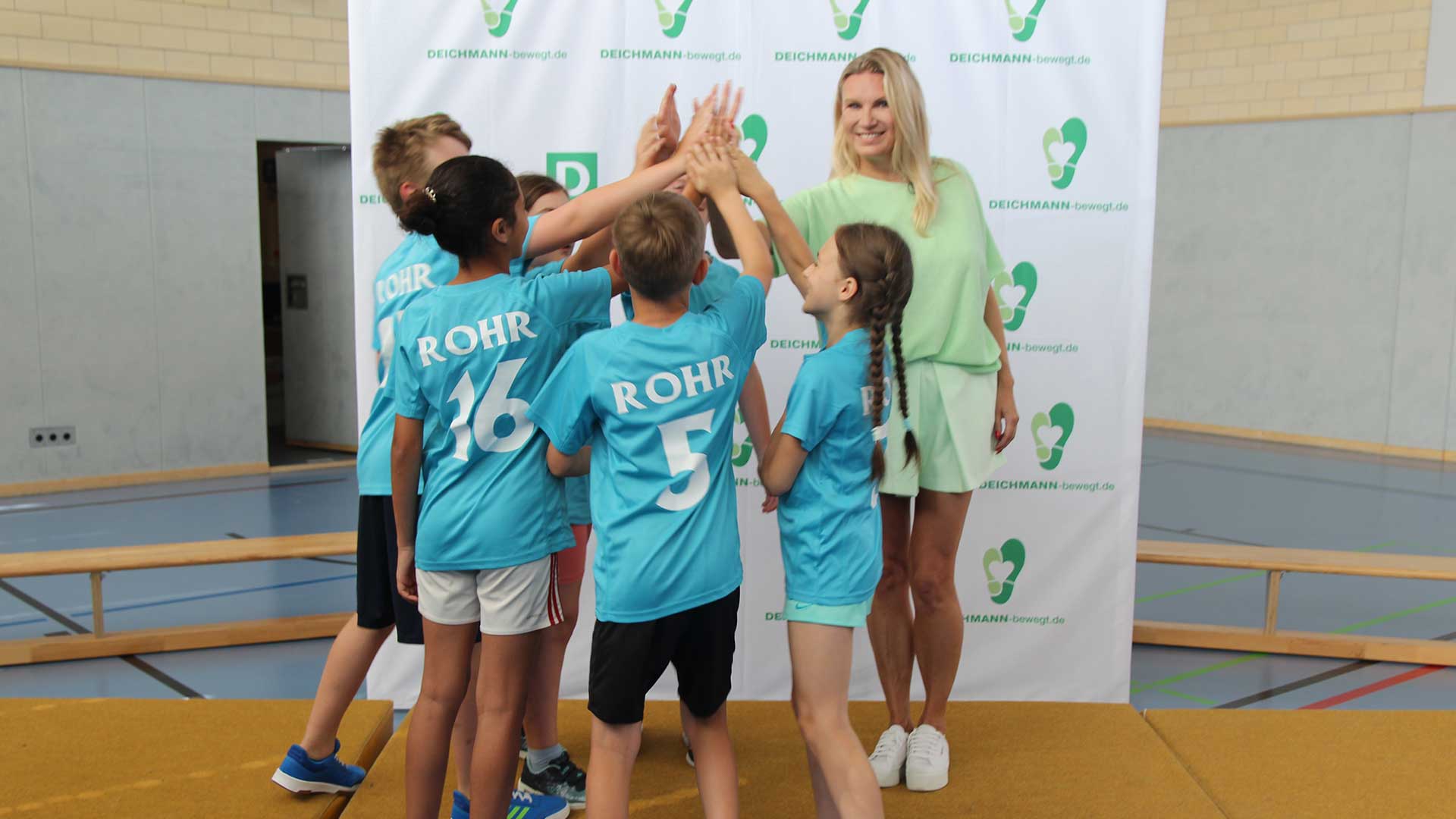 Die 2024 gestartete Initiative „DEICHMANN bewegt: Deutschlands fitteste Grundschule“ fördert die Gesundheit und Fitness von Grundschulkindern in Deutschland. Über 140 Schulen mit mehr als 20.000 Schülern sammelten von Januar bis Mai über 200.000 Sporteinheiten. Das Programm umfasst Übungen in Beweglichkeit, Koordination, Dehnung, Kraft, Ausdauer und Gemeinschaft, um die Freude an Bewegung zu wecken und langfristige positive Lebensstiländerungen zu bewirken. Die Grundschule Rohr aus Niederbayern gewann den ersten Platz und wurde bei einem Event mit der Schirmherrin Magdalena Brzeska ausgezeichnet, die die Bedeutung von Bewegung im Alltag betonte.